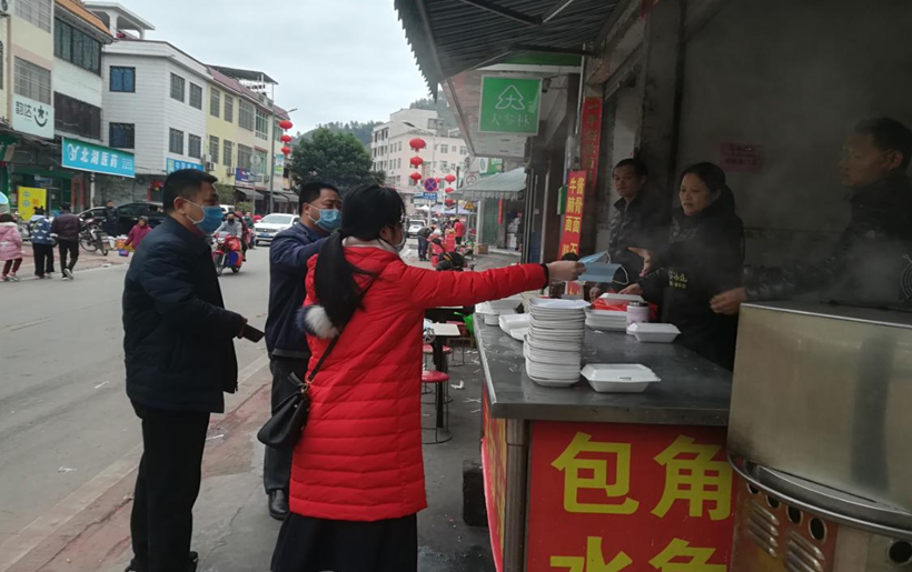 1月27日,西岸鎮(zhèn)鎮(zhèn)長周少君對西岸街早餐店經(jīng)營者進行宣傳,要求他們戴好口罩。