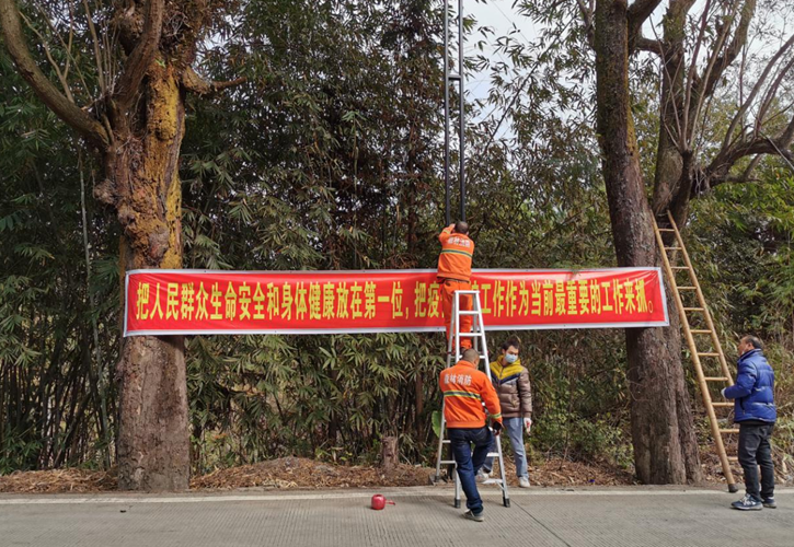 1月28日,西岸鎮(zhèn)在路邊設(shè)置宣傳橫幅。