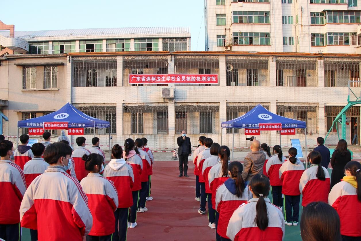 為積極應(yīng)對隨時可能出現(xiàn)的校園新冠肺炎疫情,做到早發(fā)現(xiàn)、早處置、早管控,12月23日下午,廣東省連州衛(wèi)生學(xué)校在學(xué)校運(yùn)動場開展了一場全員核酸檢測應(yīng)急演練。為確保演練順利進(jìn)行,提前組織制定了演練方案,21日下午召開現(xiàn)場任務(wù)部署會,明確分工,力求演練全程嚴(yán)格按照核酸檢測的規(guī)范程序進(jìn)行。