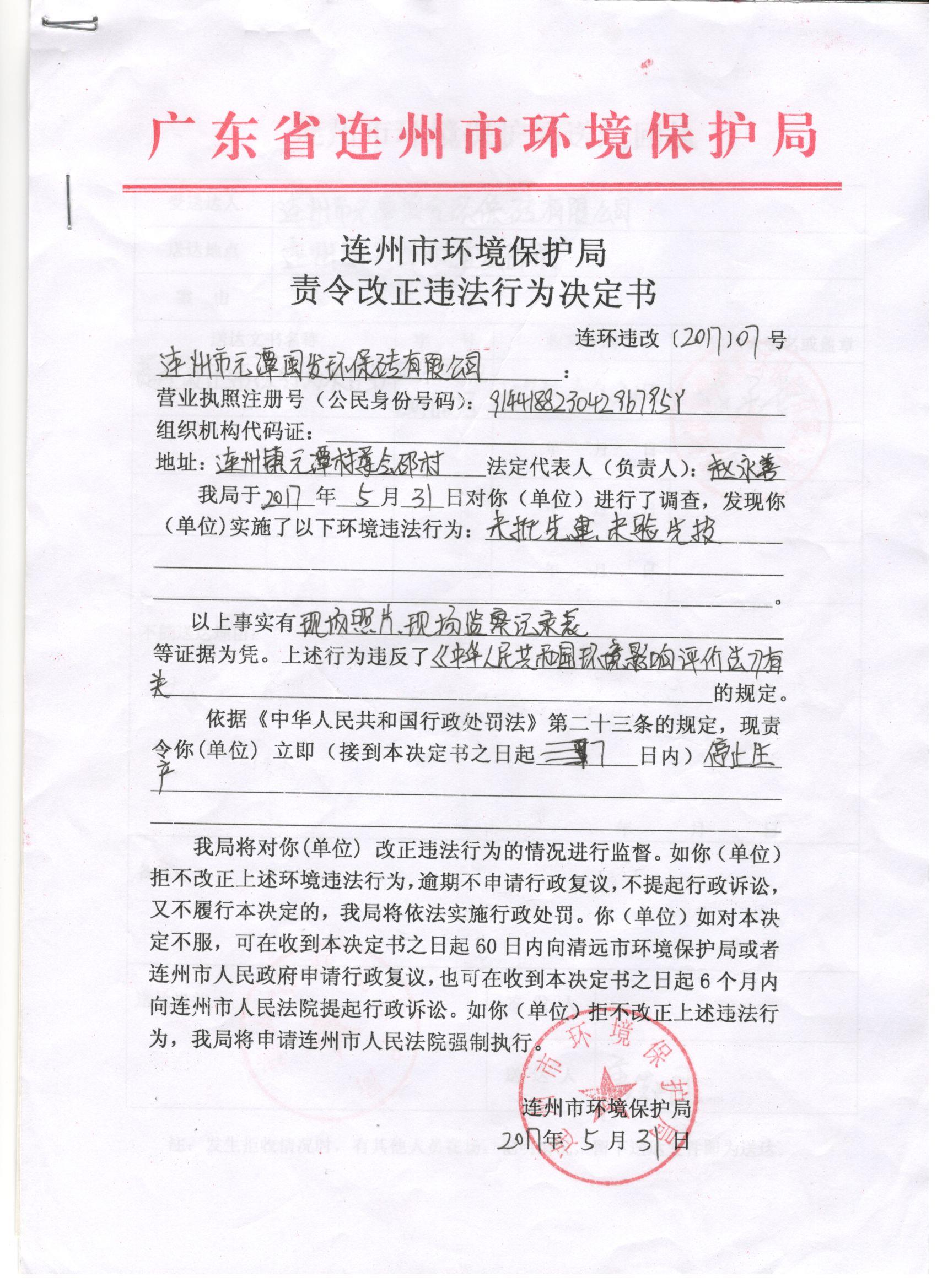 來(lái)源:連州市環(huán)境保護(hù)局 發(fā)布時(shí)間:2017-05-31 14:48:00 字體大小: 瀏覽次數(shù):-