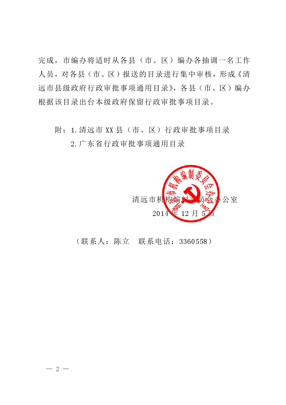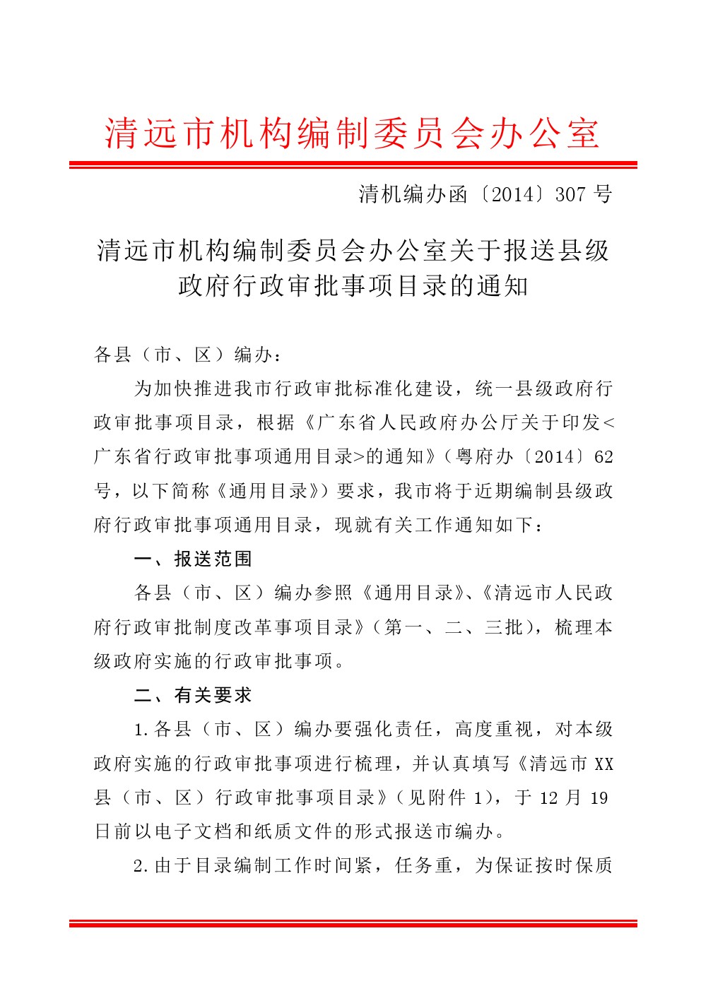 清遠(yuǎn)市機(jī)構(gòu)編制委員會(huì)辦公室關(guān)于報(bào)送縣級(jí)政府行政審批事項(xiàng)目錄的通知