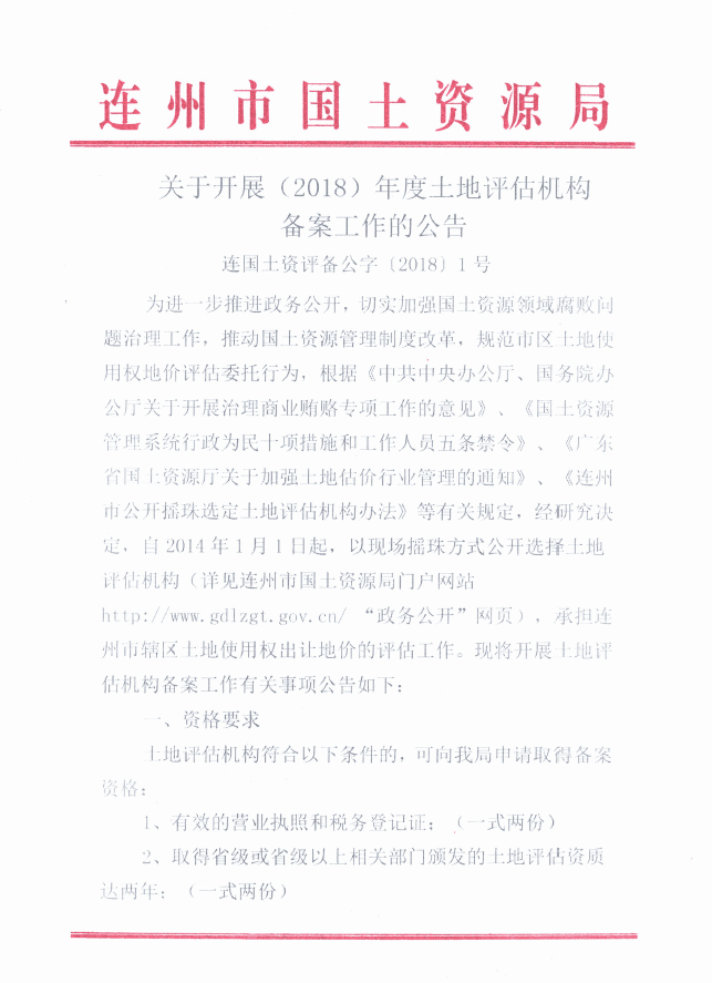 關(guān)于開(kāi)展(2018)年度土地評(píng)估機(jī)構(gòu)備案工作的公告